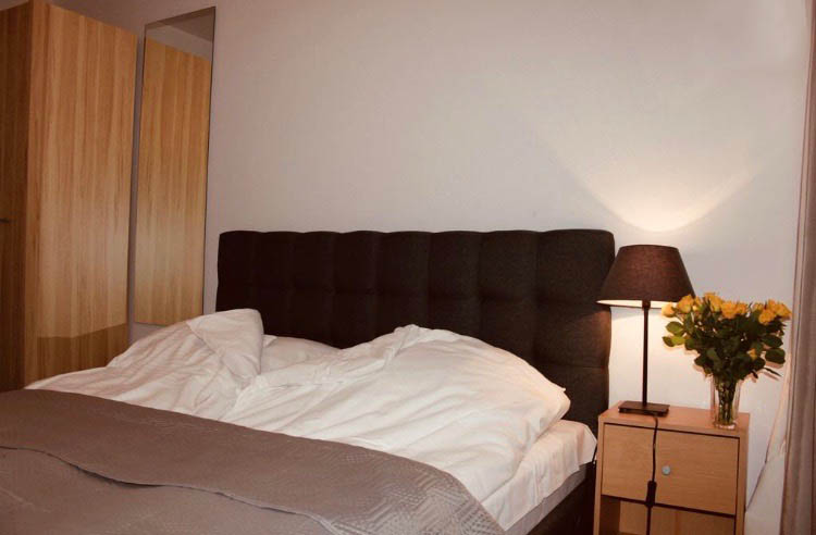 - drugi pokój: łoże dwuosobowe małżeńskie (dwie kołdry, dwie poduszki), szafa, szafki nośne, lampka nocna,