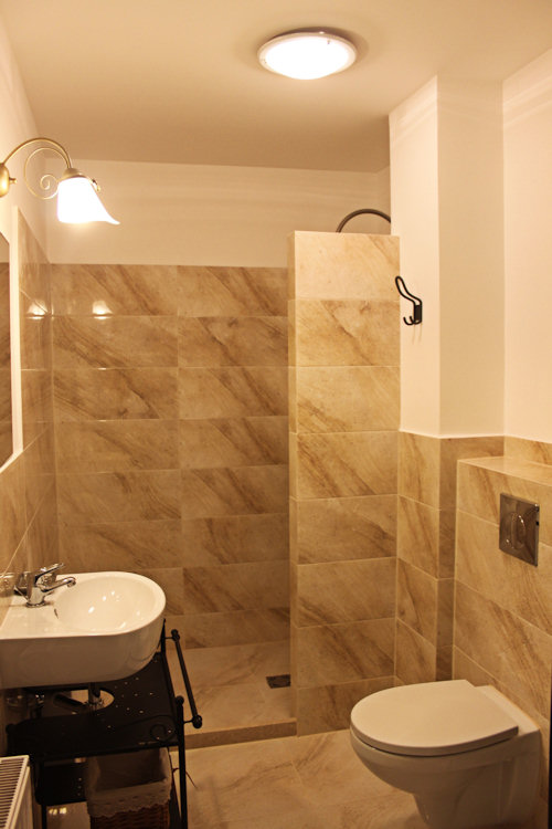 - łazienka: prysznic, umywalka, wanienka dla dzieci, podstawka dla dzieci do umywalki